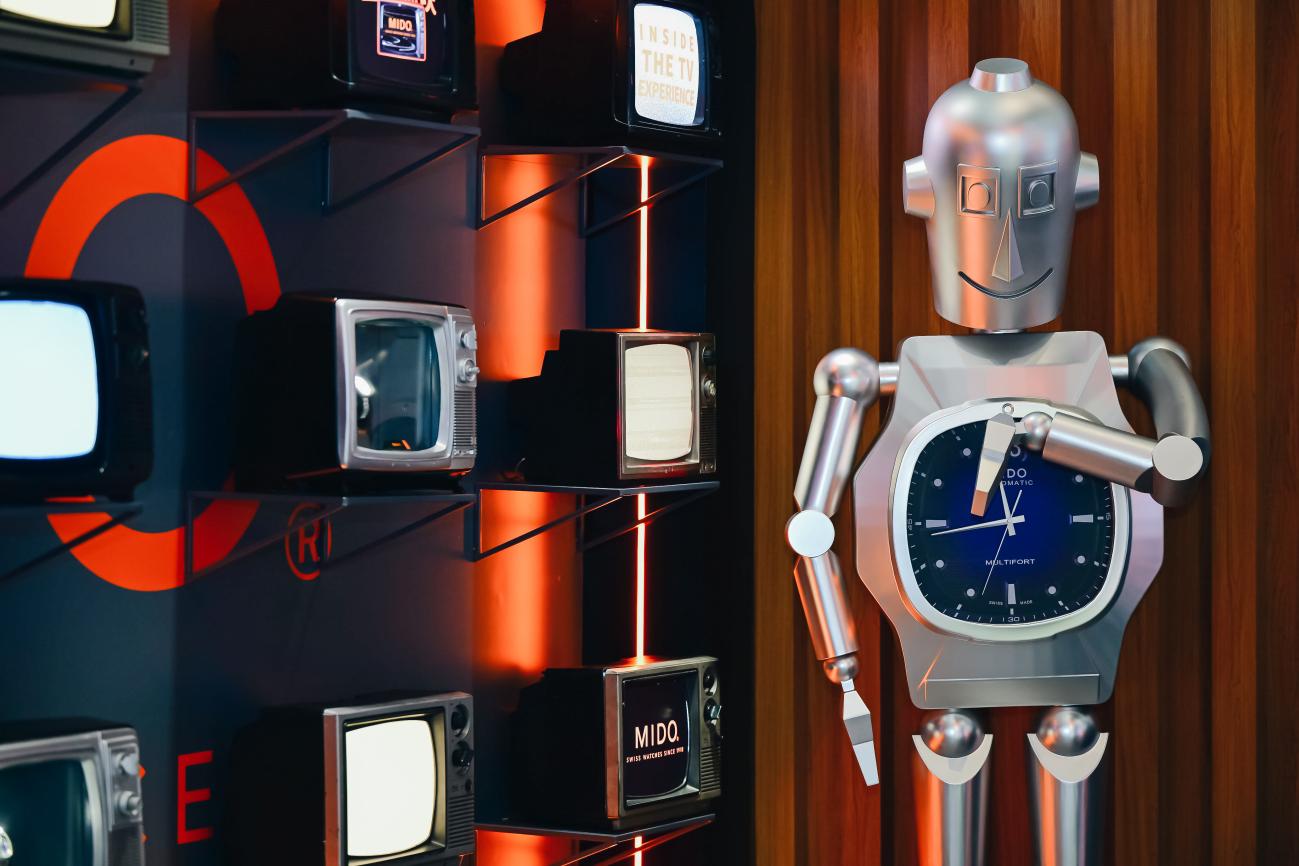 自1973年电视机形表壳诞生以来,腕表融合潮流风格与历史元素,分别于80年代及2000年重返舞台,掀起复古风潮。今次,美度经典大日历机芯的融入令这一表款再焕光彩。为呼应全新舵手系列TV腕表的摩登风范,此次快闪店选址于文化底蕴与现代潮流交织的新天地南里,在活力繁华间,畅游灵感视界。快闪空间外观以复古电视机为灵感,融汇极具现代化气息的「美度橙」色灯带,打造潮能风尚空间,历史表款与新款展露亦以别致方式诠释着时间的迭代与空间的艺术美学,彰显瑞士美度表遵循永恒设计和实用功能相结合的制表哲学。以品牌半个世纪以来不断推陈出新的精致时计为媒介,打破空间界限,在灵感碰撞中创造新巧思。诞生自1939年的美度品牌形象大使“ROBI”机器人,也惊艳亮相快闪空间,象征着美度表坚固耐用、先锋卓越的品质传承。