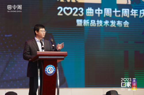 中方国信集团董事局主席,曲中周品牌创始人曲中周先生发表致辞,从品牌创业初始追忆了一路过来七年多的风雨历程,从初创到突破千店,到拥有10000多家经销商,再到非遗传承暨新品发布大会,全国各地代理商齐聚一堂,安静观看了曲中周品牌多年创业点滴在舞台上的过往。