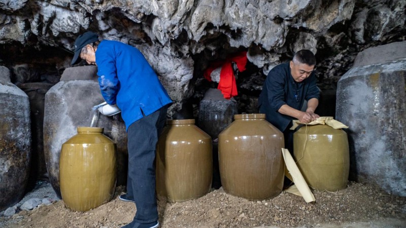 而传承于远古酿酒习俗、萌发于山民祭祀龙王偶然所得,至今形成独立特色品牌的龙洞香洞藏酒,则凭借自身底蕴与实力区分于市面上所有白酒产品。相传,大约从唐代开始,润溪锅滩附近的山民每年都前往龙心洞祭祀龙王,将祭品米酒封坛后置于洞中神坛,两三年后取出坛子,发现米酒融化,醇香扑鼻,囗味醇和。于是,人们争相将米酒存储到龙心洞里,龙心洞便成为当地秘不示人的禁地。后来,当地人将自酒封坛后放入龙心洞存储,成就了洞藏酒秘诀。神秘的摩围山龙心洞和这种特殊的洞藏之法,就此成为当地人民秘而不宣的独特酿酒之道。