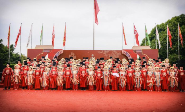 在18日举行的“和美婚典”系列活动中,五粮液“十里酒城”变身幸福的爱情舞台,沉浸式婚恋主题体验、醉美喜宴、花车巡游、婚典主仪式、夜游三江主题活动及系列配套活动,让全球招募而来的52对新人和恰逢盛会的市民游客等,通过不同维度沉浸式体验“和美婚典”,打卡地标性建筑,感受五粮液的品牌文化和宜宾的城市魅力。