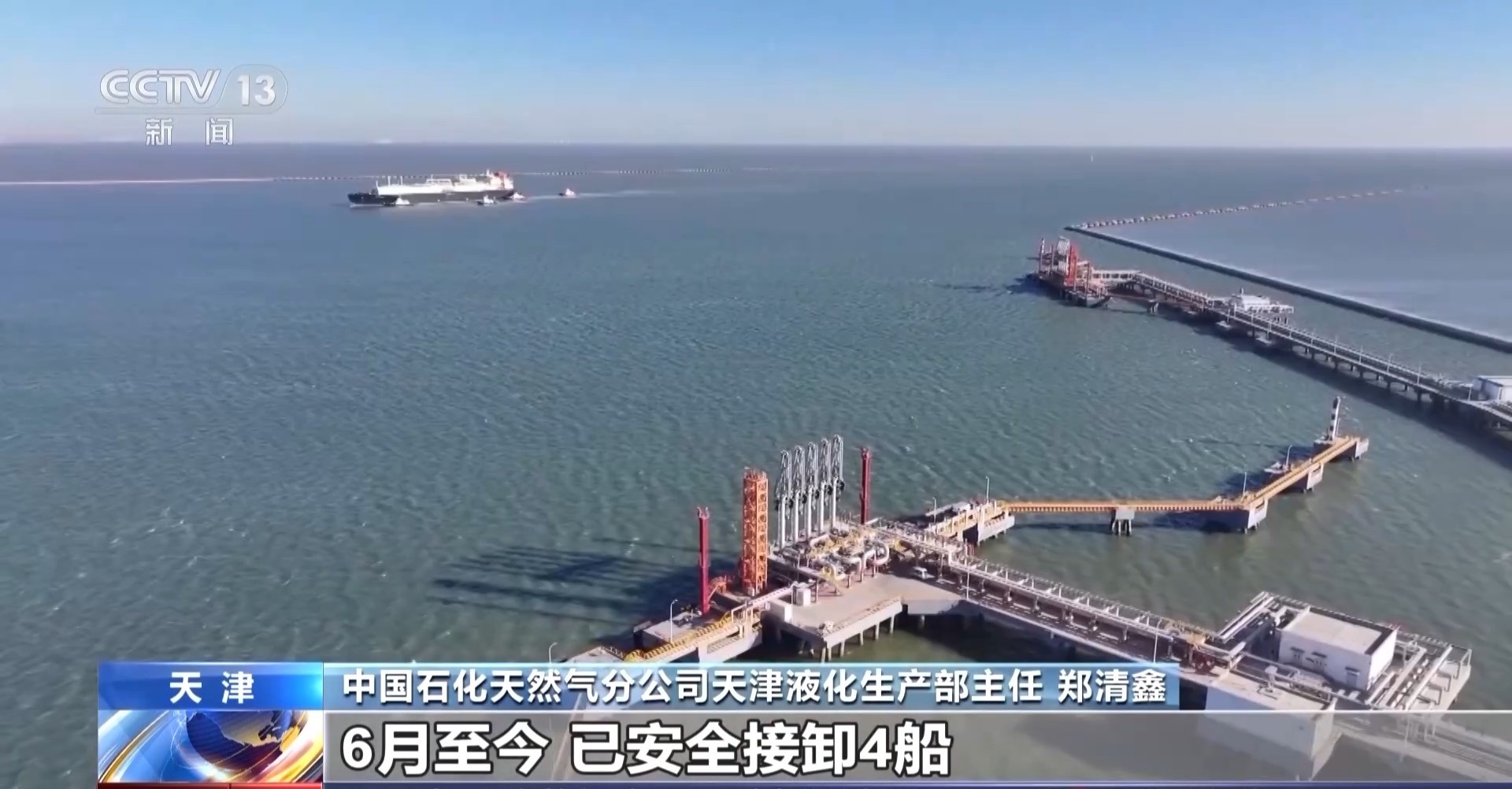 中国石化天然气分公司天津液化生产部主任 郑清鑫:我们不断优化船期衔接与港口调度,6月至今,已安全接卸4船共计30多万吨液化天然气,相当于4.2亿立方米天然气。