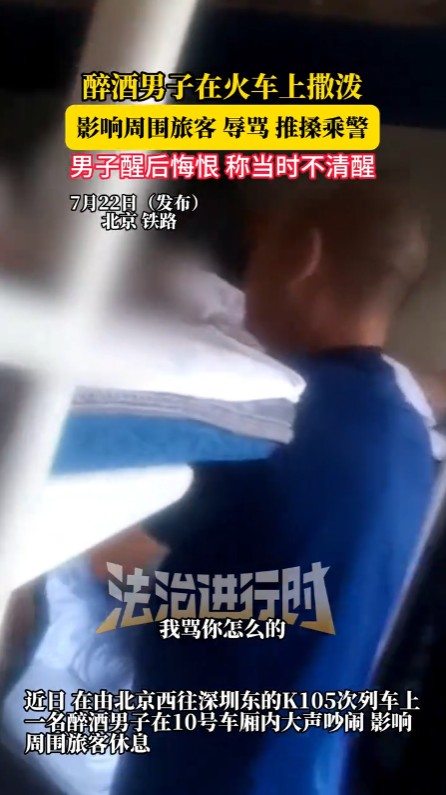 近日,北京,男子在火车上喝酒,喝醉后在车厢内大喊大叫,严重影响其他旅客休息,乘警打算带男子去其他车厢醒酒,不料,却被男子推搡、辱骂,拒不配合工作!最终男子被强行带下车,依法拘留9天,并处以500元的罚款。网友:酒是怎么带上去的?