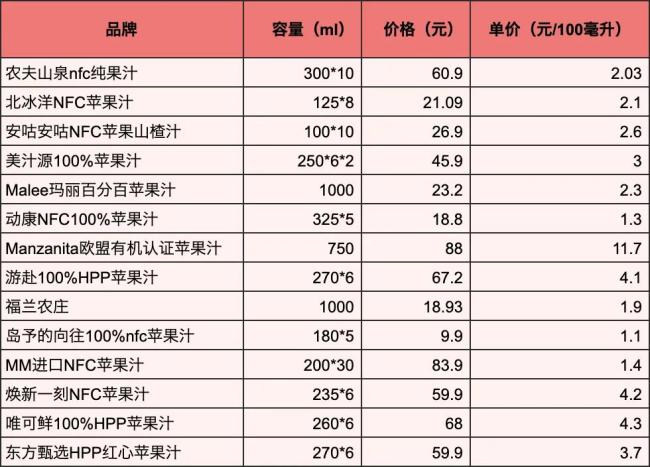 有网友在社交平台上发文称,赵露思带货的苹果汁价格高于同类产品约三倍以上,质疑其“低价收果、高价卖货”,并非真正助农。该品牌苹果汁12罐238ml的售价为113.8元,1罐将近10元,差不多4元/100ml。蓝鲸记者对比市面上多款NFC苹果汁,发现价格普遍分布在1-4元/100ml之间,其中HPP苹果汁和部分进口苹果汁价格稍高。