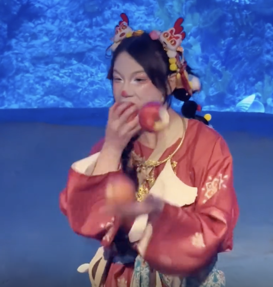 00后女生海洋馆抛苹果边抛边啃。近日,广东广州。“00后”女生自学手技杂耍,在海洋馆表演“边抛苹果边吃”,赢得全场喝彩!网友:不愧是“00后”!
