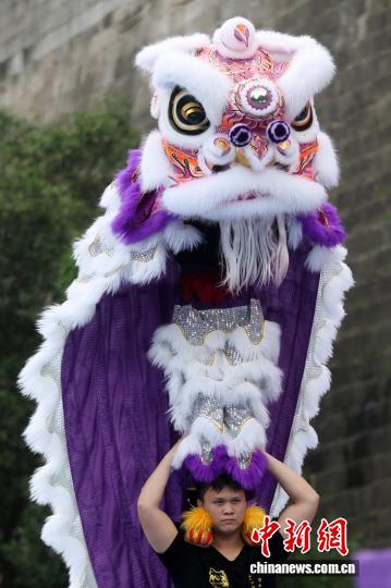 9月27日,在江苏南京举行的2025年世界华人狮王争霸赛传统南狮项目的比赛中,来自中国、新加坡、南非、美国等国家的参赛队伍轮番登台展绝活。图为南非开普敦华星龙狮团的成员在比赛中。中新社记者 泱波 摄