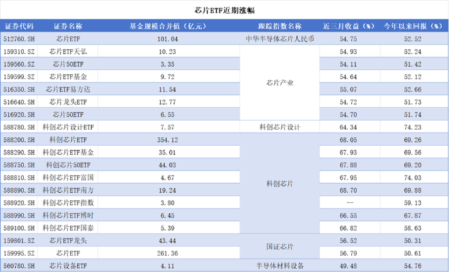 这一涨幅远超市场预期,也进一步刺激了本就一路高涨的芯片ETF和半导体ETF相关标的。
