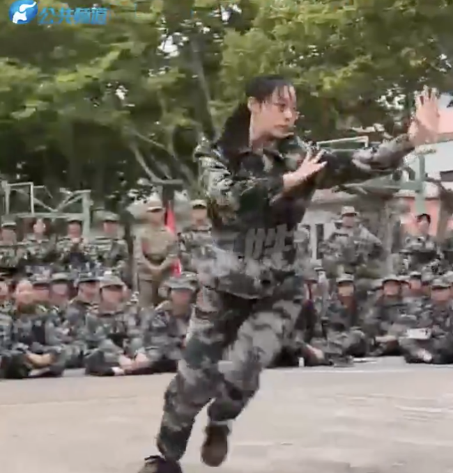军训期间女生打出一套武当拳。9月26日,安徽某校军训期间一名女生表演武当拳,动作行云流水,飒爽英姿引发全场喝彩,视频经网络传播后获赞“青春最美的样子”。