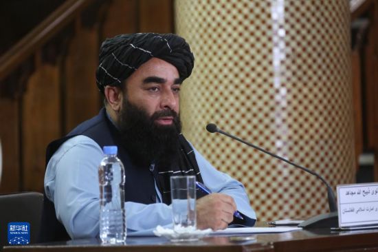10月12日,阿富汗政府发言人扎比乌拉·穆贾希德在首都喀布尔举行的记者会上发言。新华社发(塞夫拉赫曼·萨菲摄)