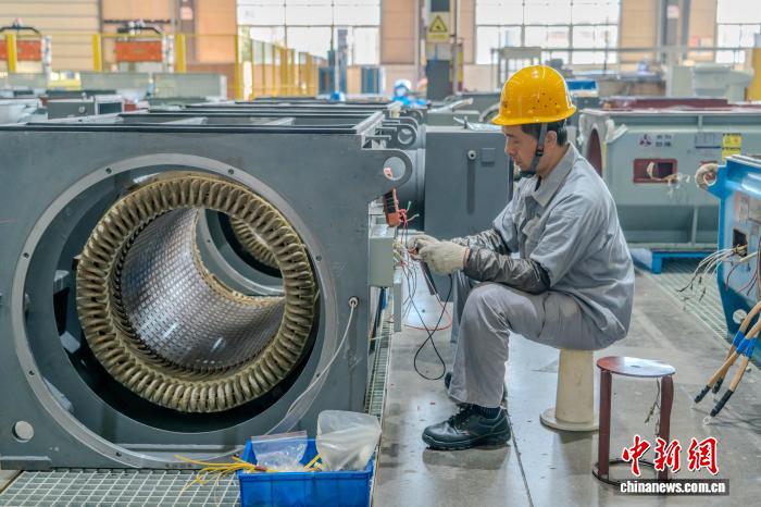 图为转子平衡工序上忙碌的工人。中新社记者 李超庆 摄