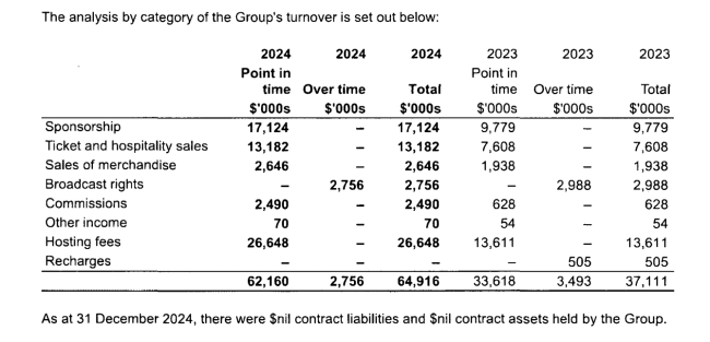 其次是赞助收入,LIV Golf Ltd 2024年在海外(非美区)业务中通过赞助业务获得了1712万美元的收入,几乎是 2023年的两倍,但与PGA Tour那种每年数以亿美元计的赞助收入依然有巨大差距。
