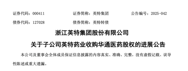 10月21日,浙江英特集团股份有限公司发布公告称,其于近日收到国家市场监督管理总局出具的《经营者集中反垄断审查不予禁止决定书》,根据《中华人民共和国反垄断法》第三十一条规定,经审查,现决定对浙江英特药业有限责任公司收购浙江华通医药集团有限公司股权案不予禁止。浙江英特集团即日起可实施该笔股权收购。