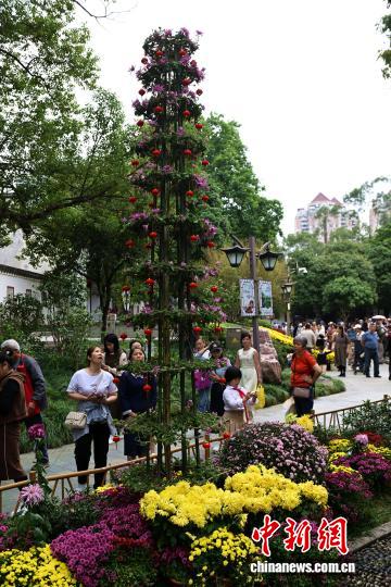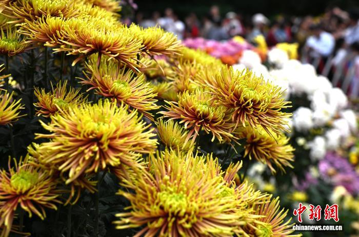 11月7日,市民、游客在福州西湖公园参观菊花展。中新社记者 吕明 摄