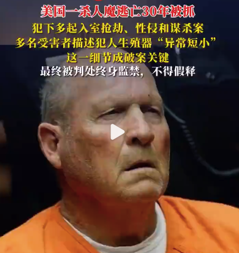 逍遥法外数十年的美国“金州杀手”迪安杰洛已于2020年认罪伏法,其案件最新细节近日被披露:他异常短小的生殖器,曾是警方串联多起案件、确认其身份的关键线索。