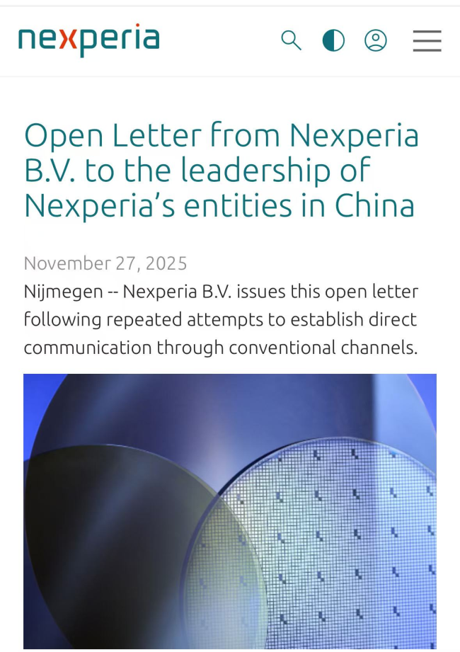 当地时间11月27日,荷兰安世半导体在官网发布一封公开信,强调其一直试图与安世中国保持合作,并多次提出正式对话请求,希望讨论恢复正常产品供应的可行路径。公开信指出,荷兰安世通过邮件、函件等方式多次寻求沟通,甚至提出多种互惠方案,但始终未收到来自安世中国实体的“实质性回应”。