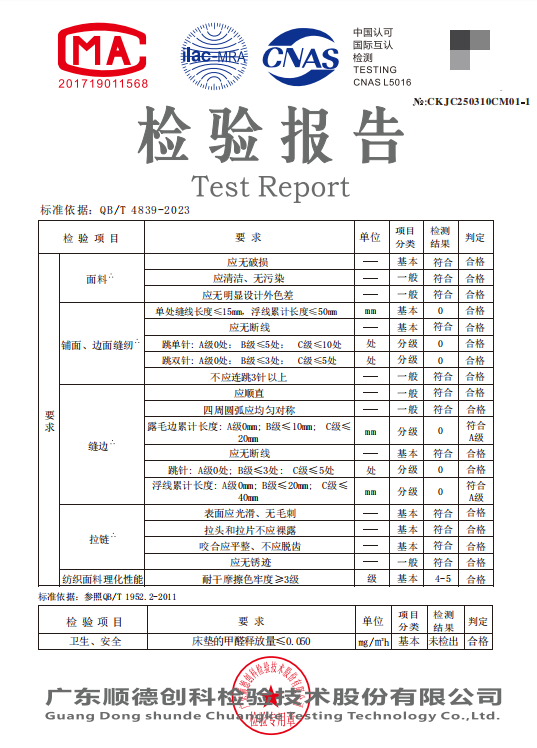 成品检测环节,溯源系统同步了第三方权威机构的检测报告,涵盖甲醛释放量、抗菌防螨效果、阻燃性能、辐射安全等多项指标,与品牌承诺的“十大放心保障”一一对应。每一张床垫都有专属的溯源码,如同产品的“身份证”,让消费者随时查询、全程监督,真正实现“看得见的放心”。