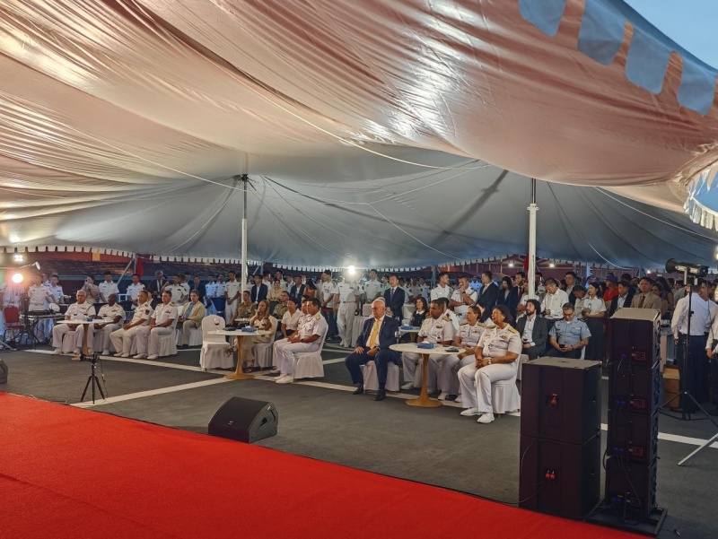 医院船指挥员方劲松少将致辞。人民网记者 陈一鸣摄