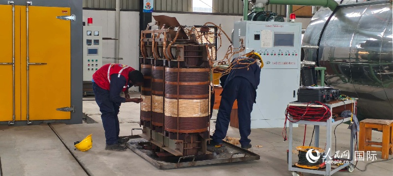 当地工人正在组装变压器。人民网记者 黄培昭摄