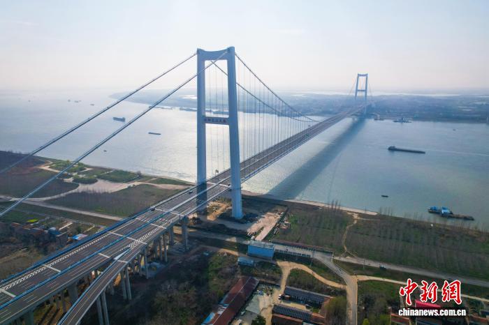 中新社武汉3月20日电 (黄子珅 楚晓 张芹)新港高速公路双柳长江大桥20日正式通车试运营。该桥是湖北省第40座、武汉市第12座长江大桥,也是武汉都市圈环线高速关键节点,被誉为武汉“东大门第一桥”。