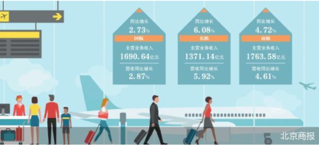 国航的国际客运收入同比增长14.13%。东航也在财报中表示,公司主营业务的国际收入大幅增长,新开多条国际航线,国际运输周转量同比增长19.77%。